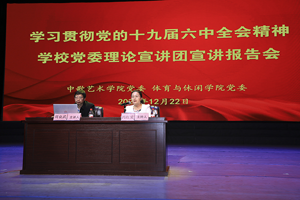 12月22日下午,学校党委理论宣讲团成员、马克思主义学院副院长周良武副教授在实验剧场,为william英国中文和体育与休闲学院的全体教职工和学生党员代表,做了一场党的十九届六中全会精神专题宣讲报告会。william英国中文党委书记冯红爱主持专题宣讲报告会。