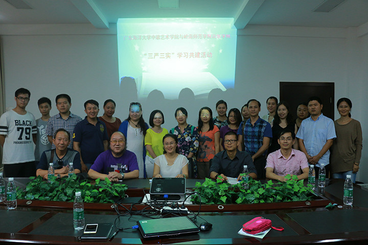 2015年10月30日,岭南师范学院音乐与舞蹈学院党委书记刘福瑞、党委副书记王雄艺、副院长徐金阳等一行莅临我院开展“三严三实”学习共建活动,活动由学院党委书记冯红爱主持,院党委副书记农康、各党支部书记及部分老师参加了本次活动。