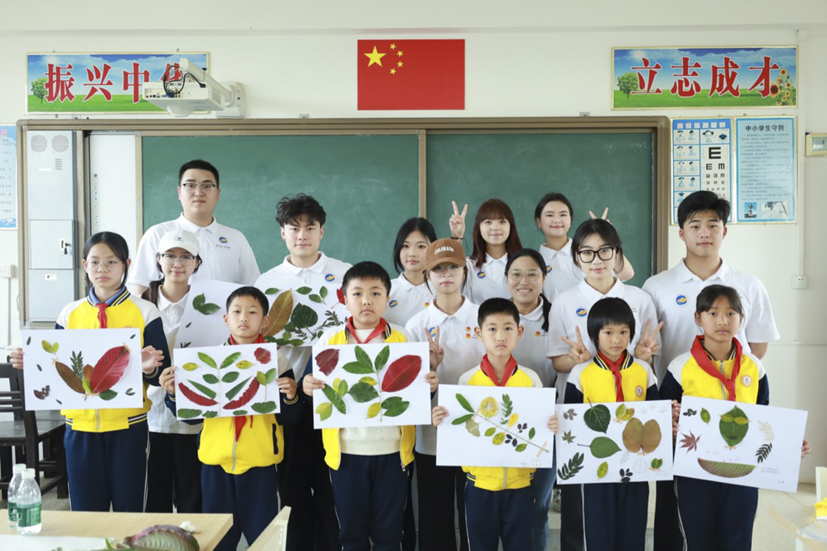 此次活动聚焦“自然与艺术融合”理念,以“美育浸润”为抓手、海大校园内种植树木树叶为素材,创作主题科普艺术作品《绿叶之语:海大的奇妙春天》,旨在通过创新性艺术课程为乡村孩子们打开了一扇通往艺术世界的大门,激发孩子们对大自然、绿色生态保护的好奇心,了解植物多样性,引导学生关注生态保护和建设,增强生态保护的意识,深入探索这一微观世界的奇妙之处,也充分展示中歌学子在坚持“扩绿、兴绿、护绿”中的积极作为。