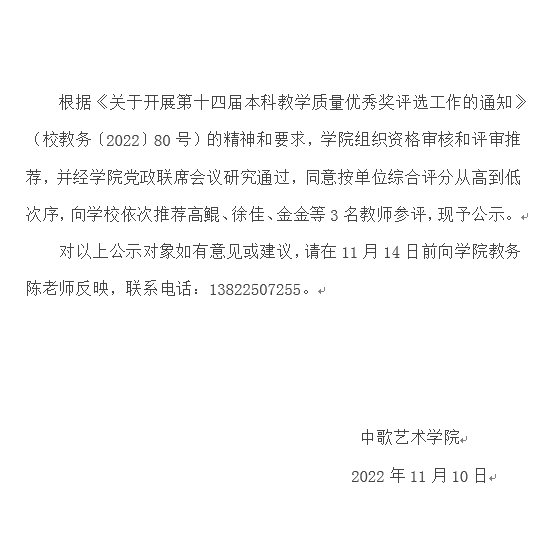 关于william英国中文推荐十四届教学质量优秀奖评选的公示
