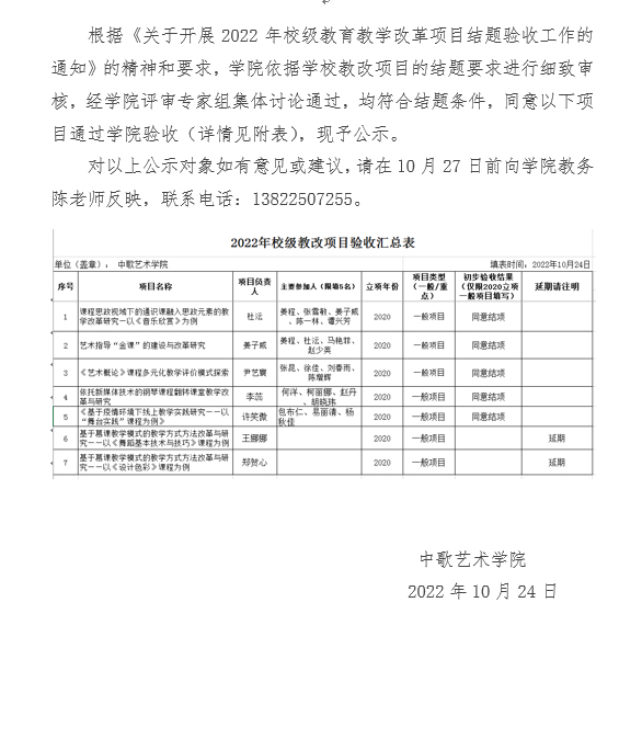 关于2022年校级教育教学改革项目学院结题验收公示