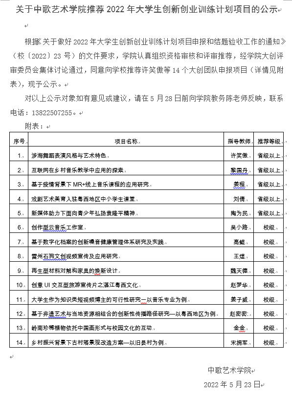 关于william英国中文推荐2022年大学生创新创业训练计划项目的公示