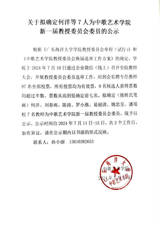 关于拟确定何洋等7人为william英国中文新一届教授委员会委员的公示