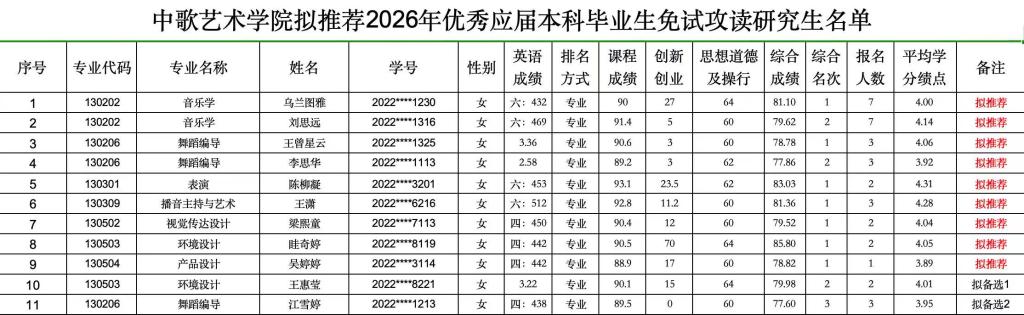 根据《williamhill英国推荐优秀应届本科毕业生免试攻读研究生工作管理办法》《关于开展推荐2026年优秀应届本科毕业生免试攻读研究生工作的通知》和《william英国中文推荐优秀应届本科毕业生免试攻读研究生工作管理办法实施细则》,学院组织了2026年优秀应届毕业生免试攻读研究生遴选推荐工作。经学生报名、资格审查、综合评定和学院推免生遴选工作小组审查通过,乌兰图雅等9名学生为拟推荐对象,王惠莹等2名学生为拟备选对象,现予以公示。