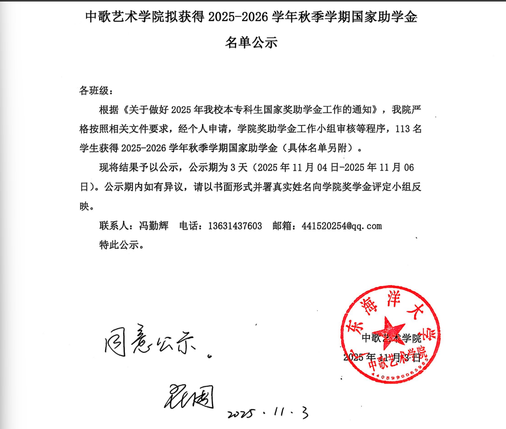 william英国中文拟获得2025-2026学年秋季学期国家助学金名单公示