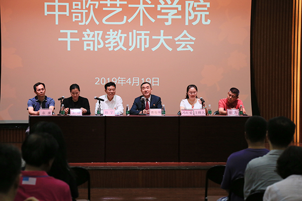 4月19日上午,我院在舞蹈楼206室召开干部教师大会,宣布学院新一届院长王珊教授的任命决定。学校党委书记曹俊明出席会议并作讲话,党委常委、校党委组织部部长林宇宣布学校党委任免决定,学院全体教职工参加了会议,会议由学院党委书记冯红爱主持。
