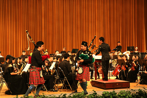 本次演出节目亮点纷呈,向观众完美呈现了《豪勇七蛟龙》、《坎迪德序曲》、《歌剧魅影》等难度较高的经典曲目,最后“海之韵”交响管乐团与陕西爱乐乐团的青年苏格兰风笛演奏家马丁、肖继文的合作演出将晚会推向了高潮。