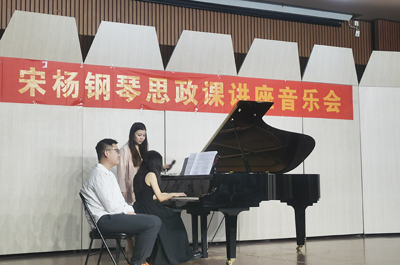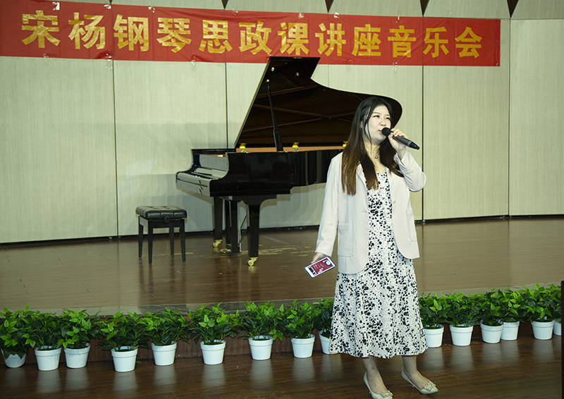 在音乐会上,宋杨首先从红色经典曲目创作目的、思想内涵以及故事情节等内容展开讲解。接着,她先后演奏《我和我的祖国》《黄河钢琴协奏曲全篇》《我爱你中国》《娄山颂》等一系列红色经典曲目。随着宋杨老师钢琴声响起,现场气氛瞬间被点燃,她精湛的技艺和深情的演绎,让每一首红色经典曲目都焕发出新的生命力,让现场师生在琴声中感悟艺术之美、情感共鸣和精神滋养,在欣赏音乐的同时,也接受深刻思想政治教育。最后,宋杨还与现场学生互动交流,针对同学们演绎作品中所存在的主要问题进行指导,给同学们上了一堂精彩的钢琴艺术课。