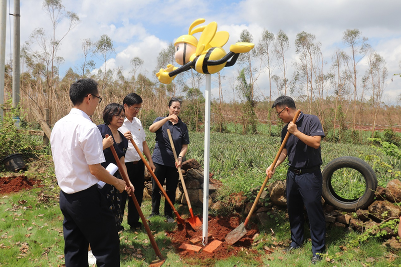 最后,伍彬队长和学院一行举行了蜜蜂和无人机文创雕塑群筑立仪式。