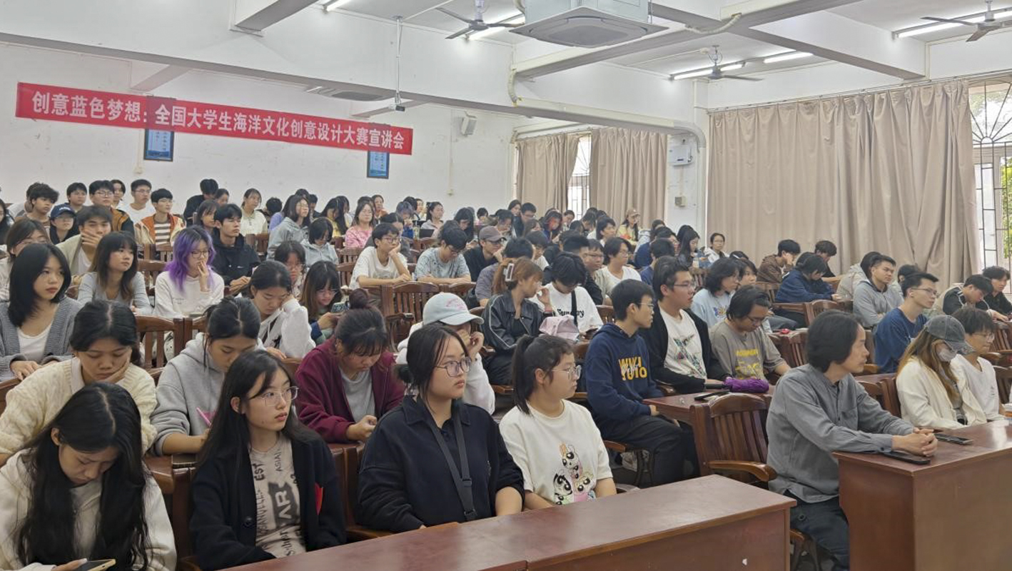 为提升我院设计类专业学生的设计能力与水平,提高学生对专业设计竞赛的参与度和积极性,同时增强学生对海洋的关注与保护意识,11月20日,我院特邀全国大学生海洋文化创意设计大赛评委、岭南师范学院李强副教授莅临我校举办参赛指导讲座。