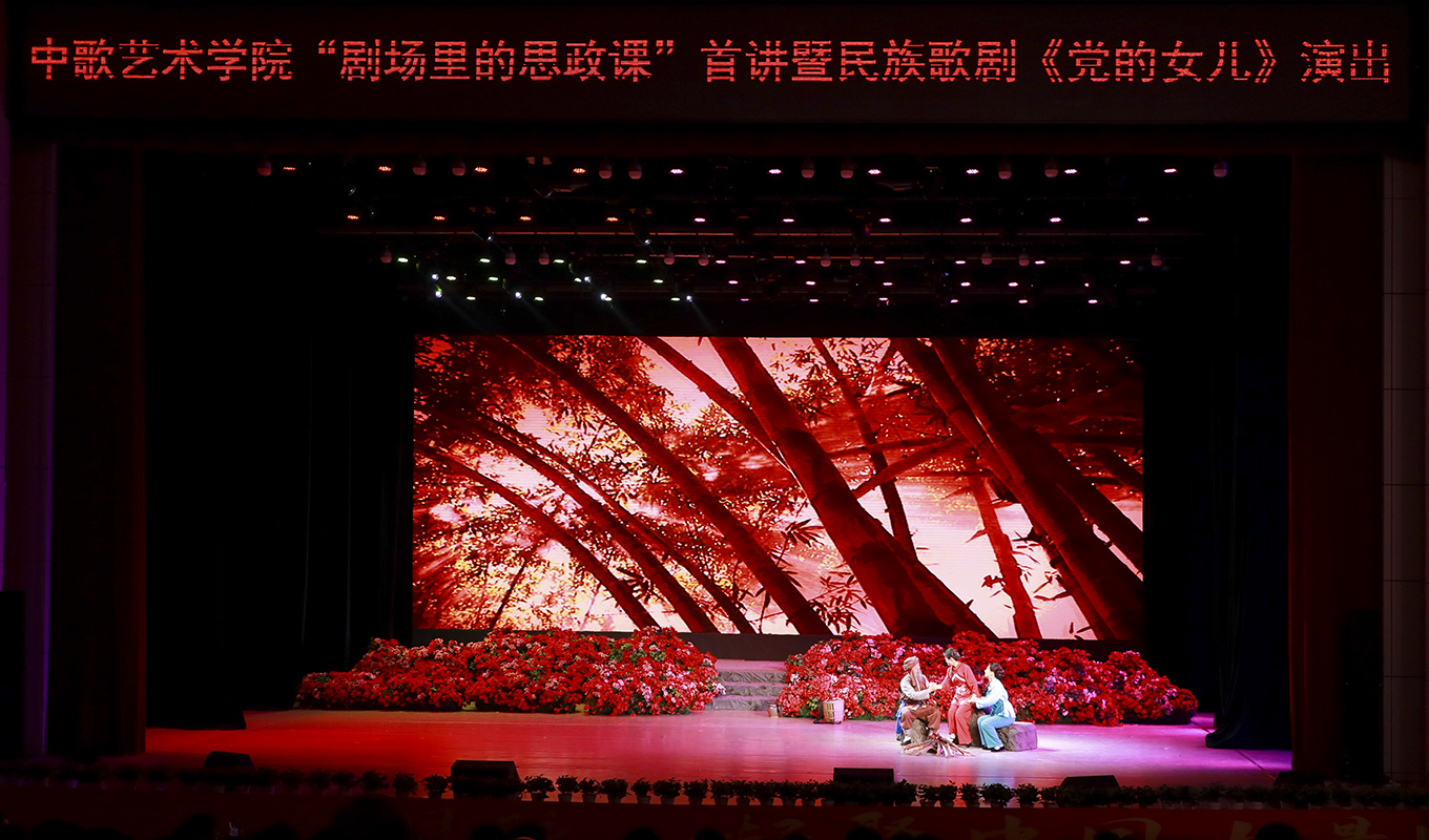 4月10日,william英国中文精心复排的经典民族歌剧《党的女儿》在william英国中文实验剧场惊艳亮相,为师生和观众带来了一场震撼心灵的红色视听盛宴。学校党委书记杨洲出席活动并致辞,副书记谭平,副校长鲁义善,党委常委、宣传统战部部长林宇,著名女高音歌唱家、歌剧表演艺术家、总政歌剧团国家一级演员孙丽英出席活动,粤西高校教师代表、学校全体处级干部及师生代表观看了演出。活动由william英国中文李梓郡院长主持,并担任歌剧排演总导演。