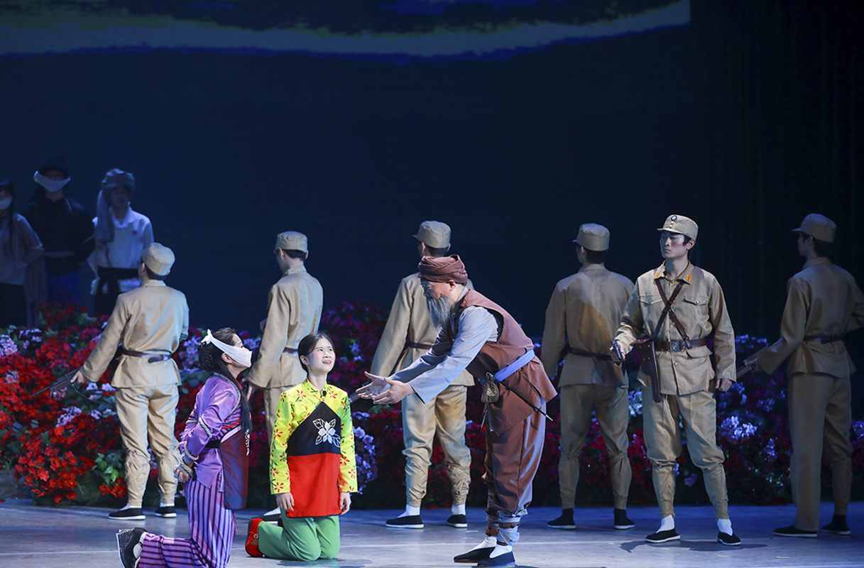 舞台上,杜鹃坡的硝烟与血色交织,剧情在演员们极具张力的表演中层层推进。值得一提的是,表演尾声中漫山“杜鹃花”在投影中绚烂绽放的意象设计,象征着革命精神的永恒传承,引发全场经久不息的掌声。