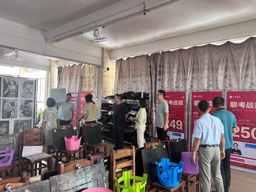 在实地考察环节,专家团队走访了美术、音乐、舞蹈等专业教学场所,对雷州八中艺术教育基础表示认可。随后的座谈会上,我院专家团队主动把脉,提出系统化美育提升方案:伍彬从帮扶机制角度,建议巩固现有成果,建立长效帮扶机制;欧卫军提出将精准对接资源,重点关注有艺术潜质的农村学生,并计划派驻专业教师对高三学生开展系统指导;李梓郡强调要注重精神引领与创新驱动,建议加强音体美特长培养体系化建设,探索AI技术在美育教学中的应用;罗小燕聚焦特色发展,提出实施“精准特色”帮扶计划,深入挖掘雷州非遗美术资源;杜沄则就艺术实践合作,提议联合开展非遗文化艺术展演活动。