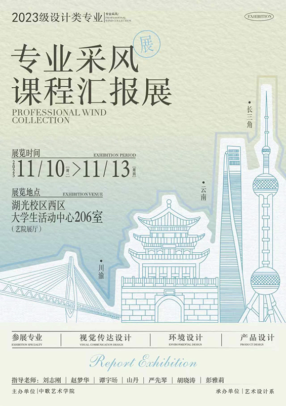 11月10日,我院艺术设计系《专业采风》课程汇报展在湖光校区西区大学生活动中心206展厅正式展出,为师生呈现一场兼具文化底蕴与专业创意的视觉盛宴,展出时间截止至11月13日。