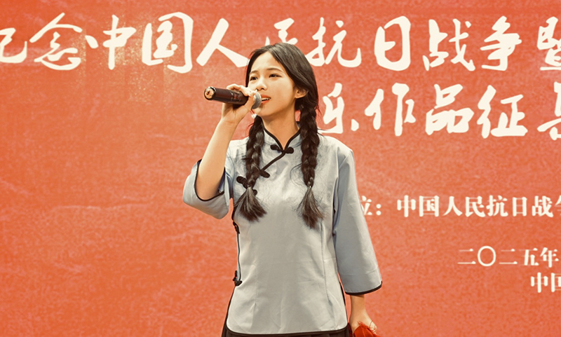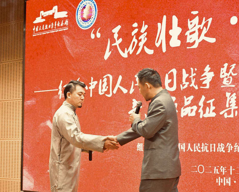 近日,纪念中国人民抗日战争暨世界反法西斯战争胜利80周年音乐作品征集活动成果展演在北京举行。本次活动由中国人民抗日战争纪念馆、中国少数民族声乐学会联合发起,我院青年教师汤洁、王晟祖、马牧源,学生乌兰图雅及优秀校友彭丽洁受邀登台,以情景表演形式演绎原创红色音乐作品《我是游曦》,深情传递红色精神,致敬革命先烈。