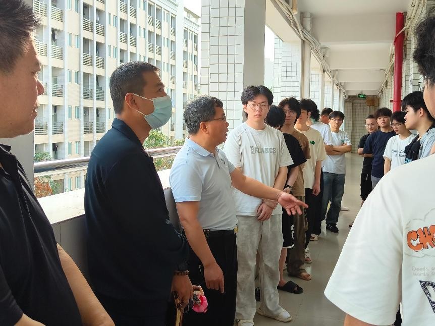 新学期伊始,为及时掌握学生返校后的思想动态和生活需求,确保宿舍环境安全有序,3月1日下午,我院党委书记许国炯,党委副书记、院长李梓郡,党委副书记翟周,副院长罗小燕、何洋带领党政办主任、系主任、教工党支部书记、辅导员、学生干部共30余人,分批次深入学生宿舍海涵、海怡、海虹,开展新学期宿舍走访慰问与安全专项检查活动,为同学们送去新学期的第一份温暖与嘱托。